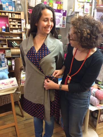 jeu, 03/11/2016 - 10:04 — VisiteurBravo, j'ai beaucoup apprecié ces cours, la realisation de la veste ...et les resultat. On peu l'allonger et la refaire version manteau pour l'hiver prochain Et avec doublure. Quelle elegance cette encolure arrondie ! Le patron est disponible l'achat, le challenge est de le refaire chez soi. Profs tres patientes.... on garde le moral en soustrayant et additionnant les centimetres. Isabelle.