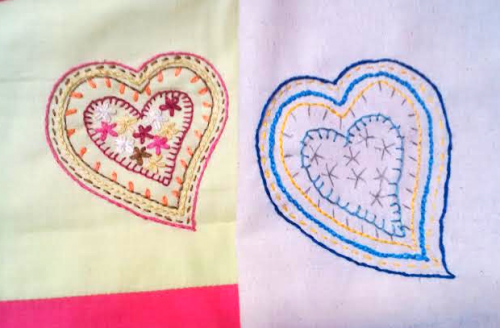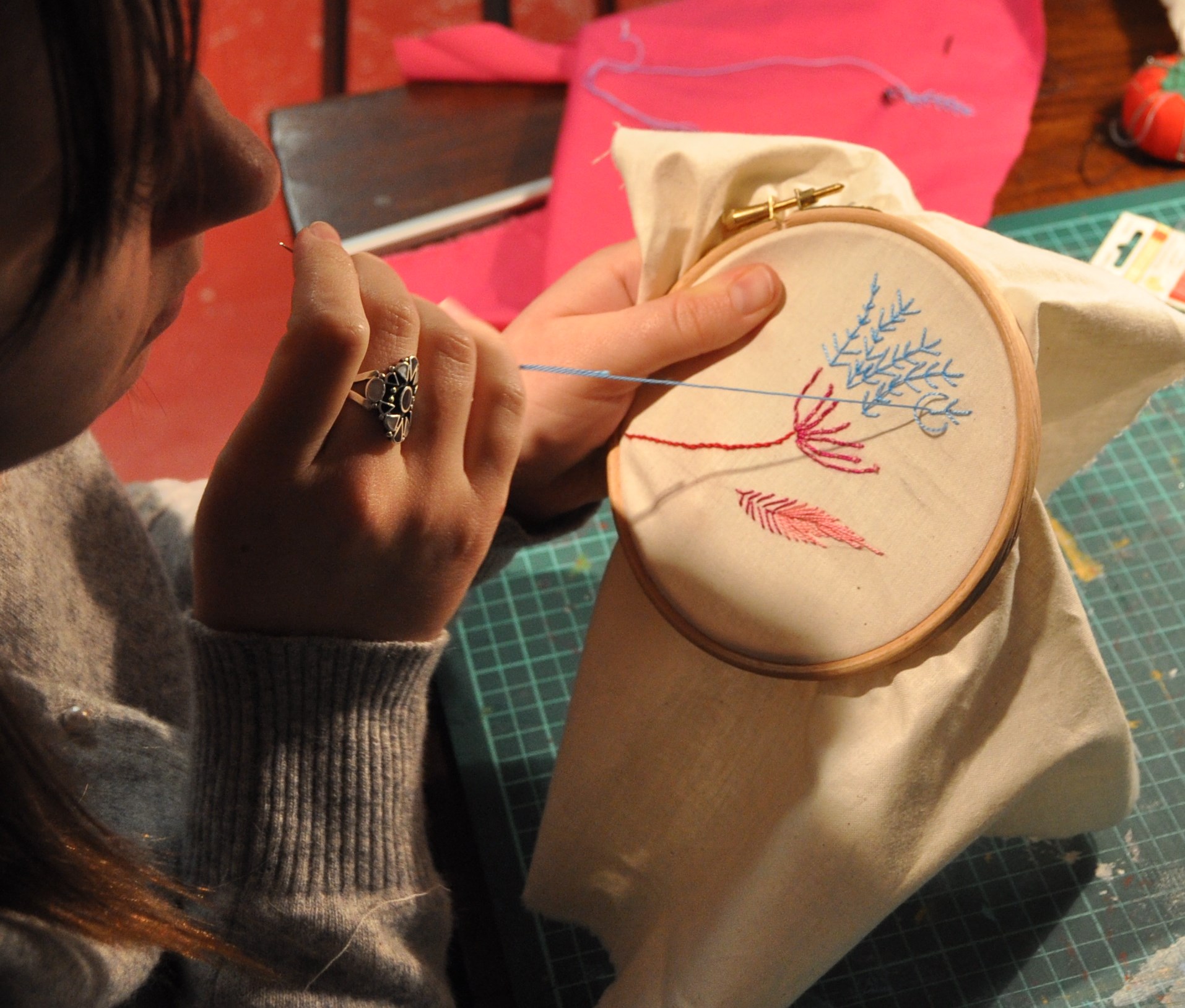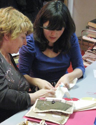 Valeria, ici appliquée sous les conseils de Josiane, qui lui a appris les points de broderie dans les règles del'art, a testé ses deux qualités haut la main!