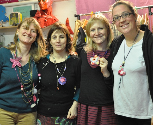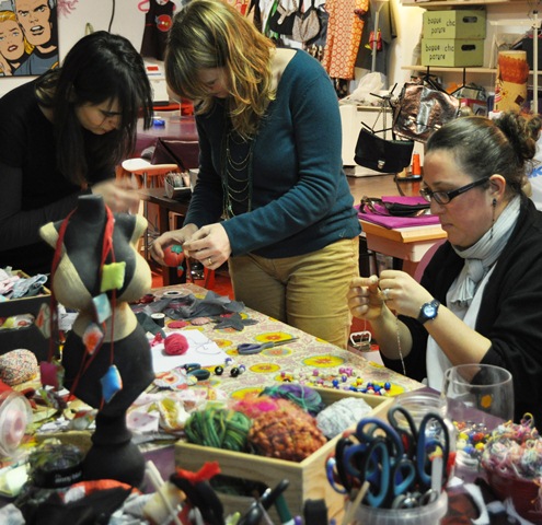 ven, 15/02/2013 - 17:53 — LaurenceBonne humeur communicative samedi dernier dans l'atelier Sautoir couture avec 4 copines venues feter l'anniversaire d'une d'entre elle en atelier, la bonne idée ! Concentration extrême, créativité ludique et exclamations ont ponctué l'atelier... Chacune est reparti avec sa création à son style et le sourire du devoir accompli ! Bravo les filles, gardez le sourire!