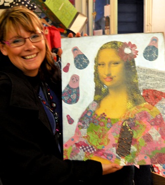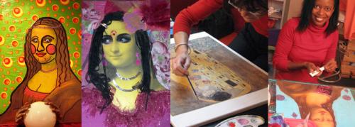 dim, 24/02/2013 - 23:09 — LaurenceEmmanuelle et sa maman sont venues passer un apres-midi créatif à l'atelier et sont reparties chacune avec de jolis tableaux ! L'une comme l'autre se sont régalées, m'ont-elles dit en sortant, "nous avons passé un super après-midi!", sourires à l'appui... Après un temps d'hésitation devant la toile du maître, elles se sont lancées et ne sont plus arrêtées : papiers, tissus, peintures tout y est passé avec passion... "et on ne voit pas le temps passer !".