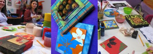 Un atelier est très apprécié pour tous ceux qui veulent aborder la peinture acrylique à travers une réalisation déco étonnante (avec l'effet de la résine en dernier lieu), idéal pour se décomplexer et oser la peinture ! Attention, le séchage de la résine dure 2/3 jours, il faut donc revenir chercher son oeuvre...