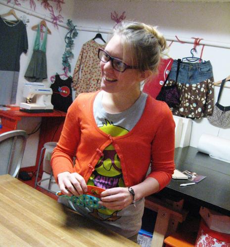 jeu, 11/10/2012 - 18:17 — LaurenceIl faut dire que c'est une fan des ateliers, déjà venue en broderie, en cours de machine à coudre... Avec toujours le même enthousiasme en sortie d'atelier!