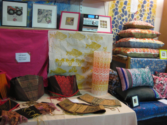 Serre-taille Aude Lorriot, Coussins imprimés, lampes, tableaux textiles Pelagie Bilodeau, Bijoux Isel,